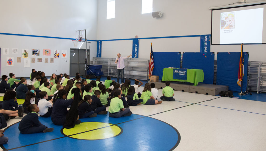I’m always ready to talk to teachers and librarians and love visiting schools and libraries to talk about my books and my work writing and drawing comics and graphic novels.